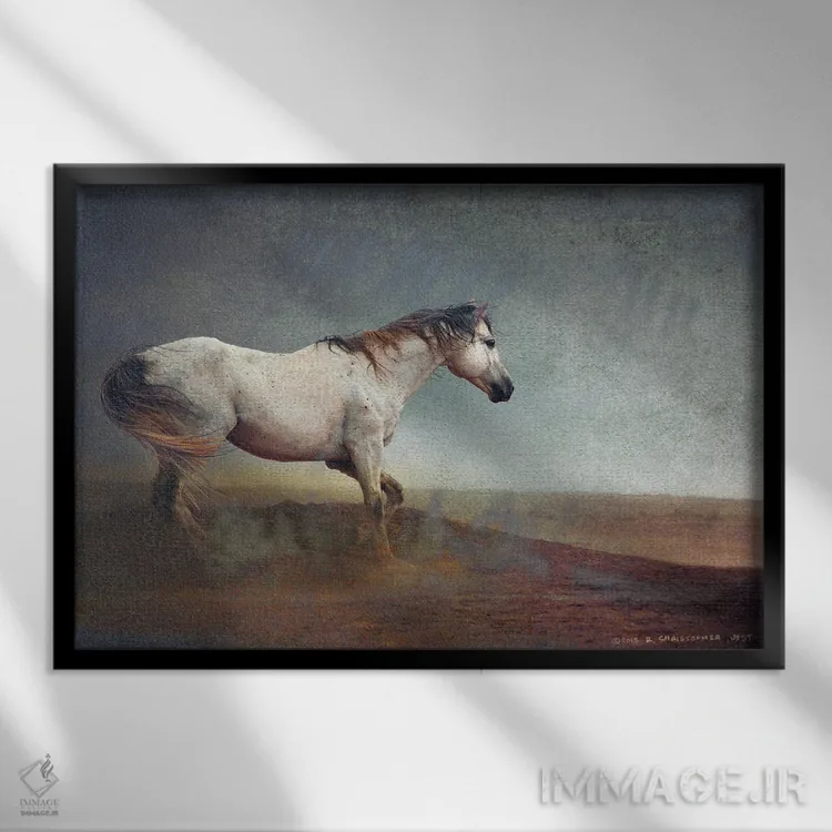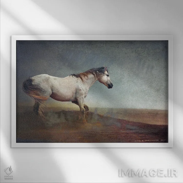 تابلو اسب سفید در طوفان خاک اثر کریستوفر وست