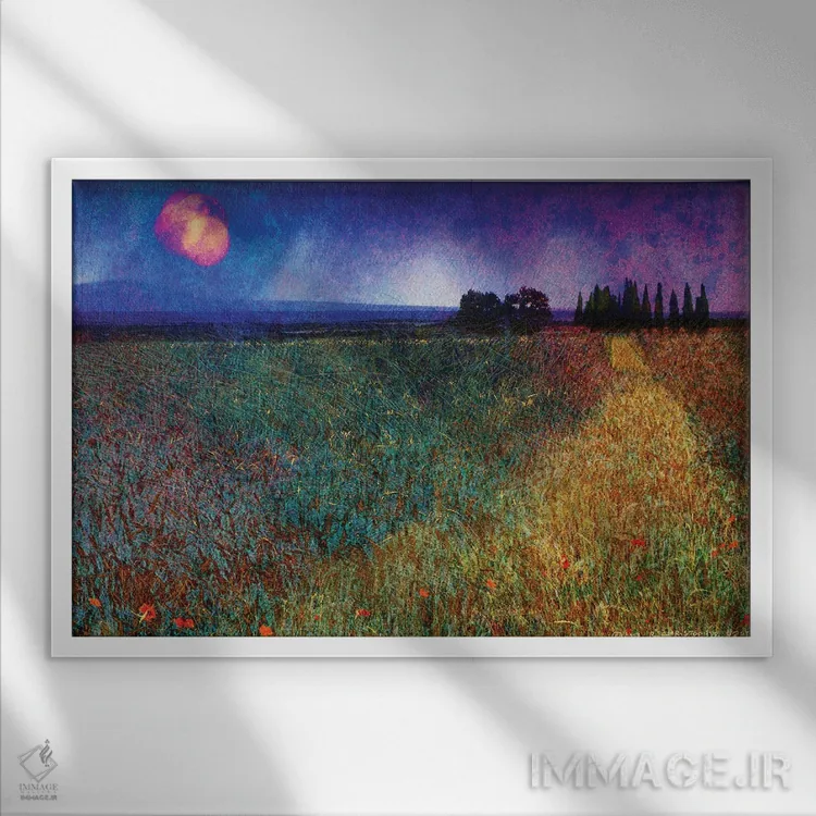 براساس پالت ترکیبی اثر، قاب تیک گرم (چوبی) پیشنهاد اول است و مشکی مات (فریم متوسط) مکمل. برای سفارشهای پروژهای با ابعاد و قابهای اختصاصی با ایماژ در تماس باشید.