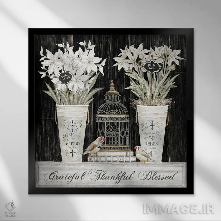 برای اتاق خواب و نشیمنهای آرام، «طبیعت بیجان قدردان، شاکر، مبارک» اثرِ «سیندی جیکوبز» در کنار چوب و پارچههای روشن، عالی مینشیند؛ برای فضاهای بوهمی انتخابی خوشسلیقه است. با قاب روشن یا چوبی، حس طبیعیتری پیدا میکند.