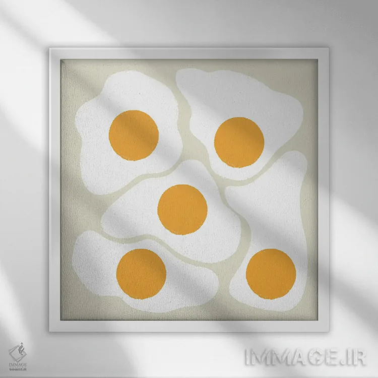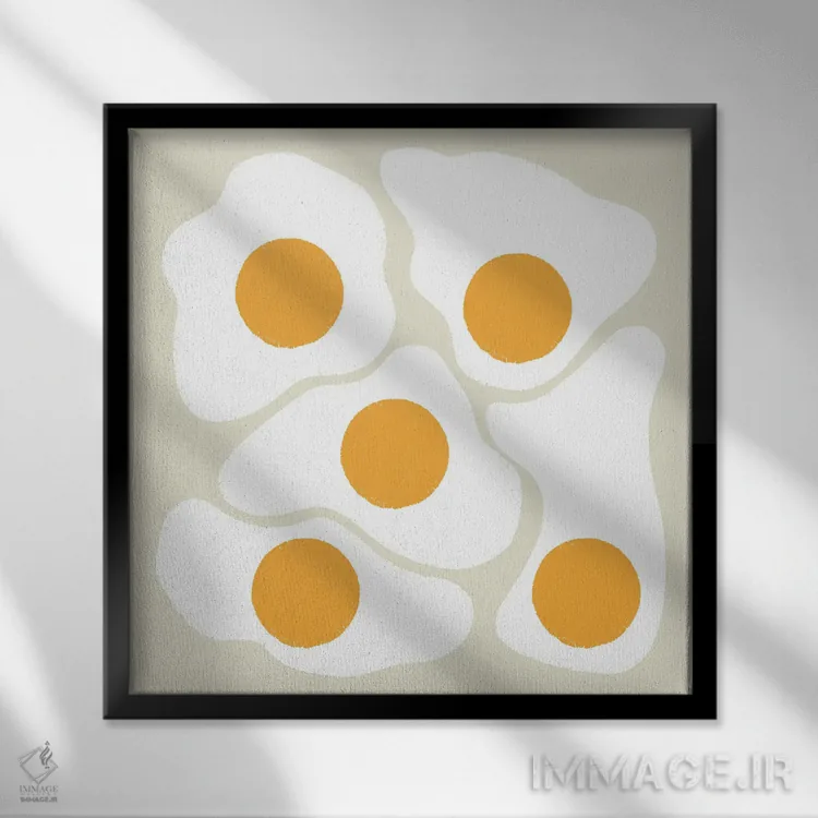 این تابلو با عنوان «تخممرغها (رنگ بژ)» اثرِ «کارمن جابیر»، حسِ گرم و صمیمی به فضا میدهد.