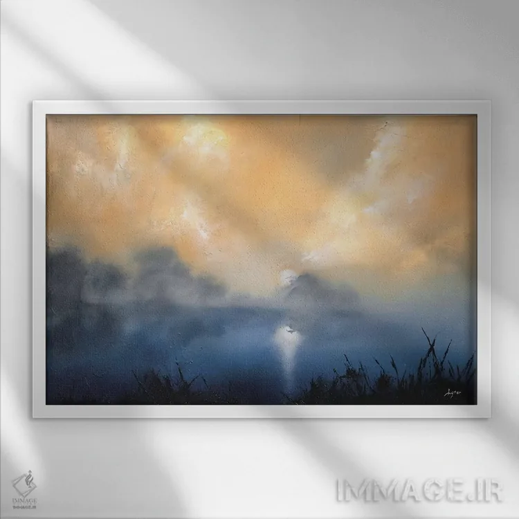 براساس پالت ترکیبی اثر، قاب تیک گرم (چوبی) پیشنهاد اول است و مشکی مات (فریم متوسط) مکمل. برای سفارشهای پروژهای با ابعاد و قابهای اختصاصی با ایماژ در تماس باشید.