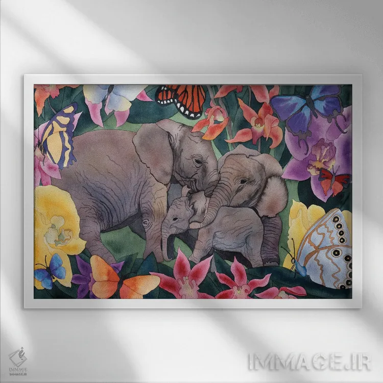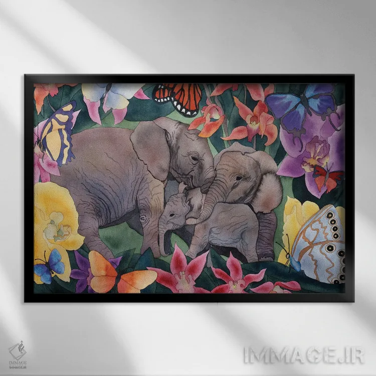 برای دکورهای صمیمی، «فیلها و پروانهها» اثرِ «کاریسا لومینس» حس طبیعت را بیدغدغه وارد خانه میکند؛ برای هدیهدادن به دوستداران حیوانات انتخابی خوشسلیقه است. به دیوار، قصه میدهد—اما قصهای آرام و شیک.