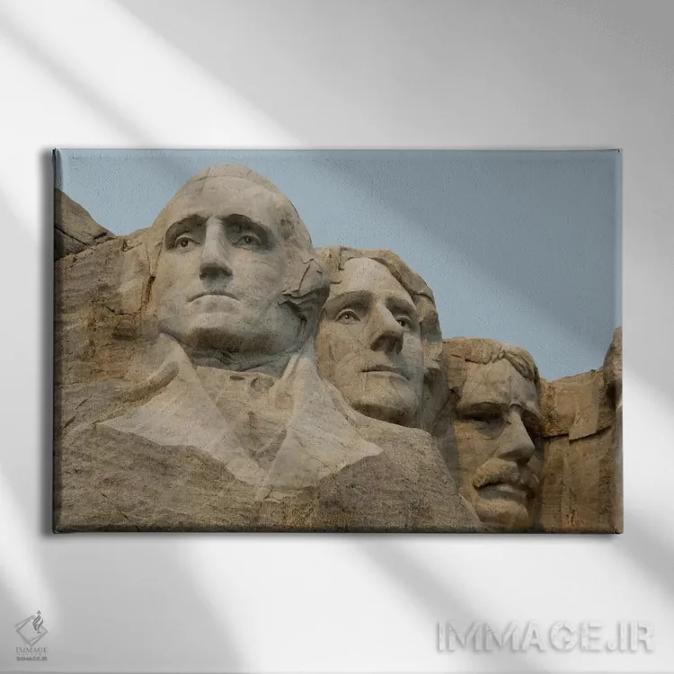 تابلو واشنگتن، جفرسون و روزولت از نمای نزدیک، یادبود ملی کوه راشمور، شهرستان پنینگتون، داکوتای جنوبی، آمریکا اثر سیندی میلر هاپکینز - نمای روبه‌رو روی دیوار