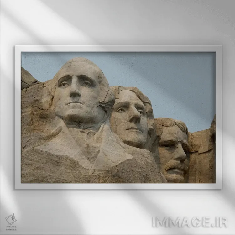 تابلو واشنگتن، جفرسون و روزولت از نمای نزدیک، یادبود ملی کوه راشمور، شهرستان پنینگتون، داکوتای جنوبی، آمریکا اثر سیندی میلر هاپکینز - نمای قاب‌دار سفید