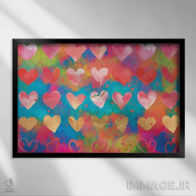 تابلو قلب‌های خوشحال اثر کلودیا مک‌کینی - نمای روبه‌رو روی دیوار