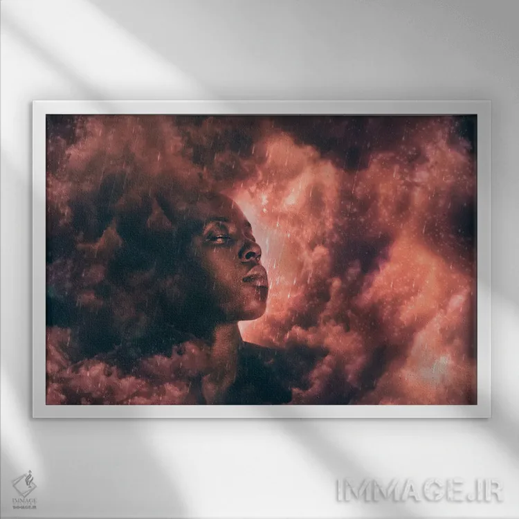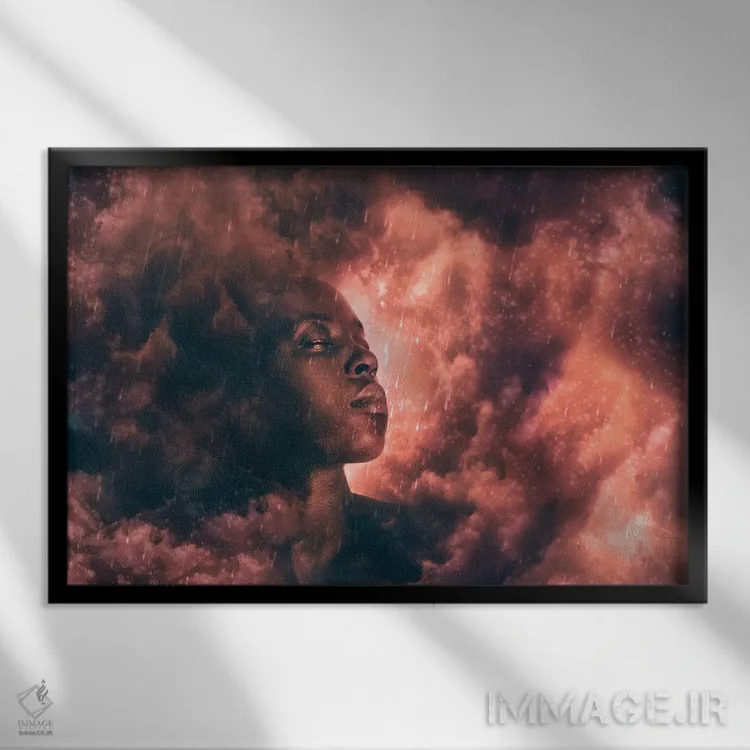 تابلو سر در ابرها اثر کلودیا مک‌کینی - نمای قاب‌دار مشکی