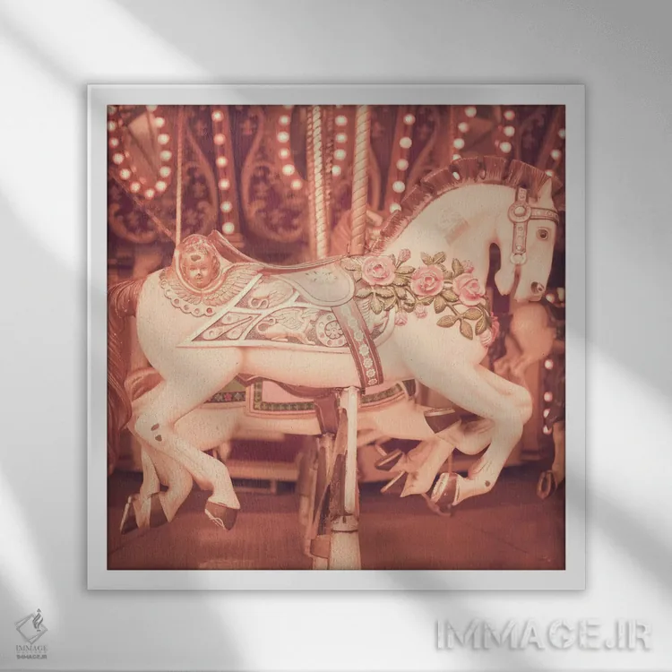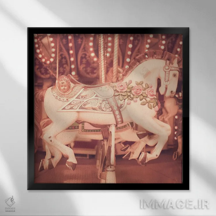 «اسب صورتی کمرنگ» اثرِ «کارولین مینت» میتواند اتاق را مرتبتر و منسجمتر نشان دهد؛ برای راهروهای شیک پیشنهاد شود. با قاب مشکی مات، جلوهٔ تمیزتری پیدا میکند.