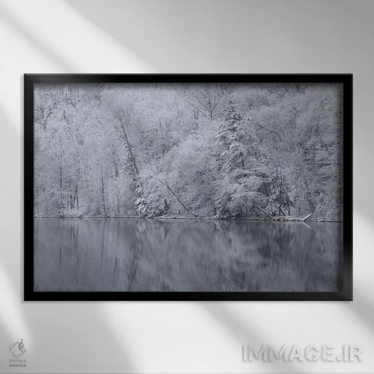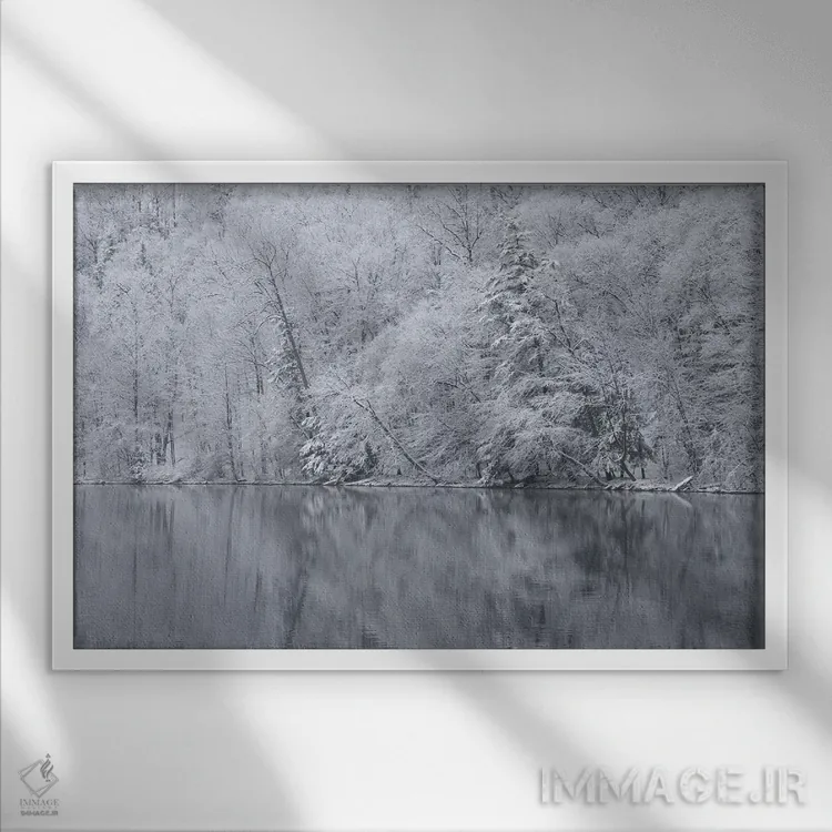 این تابلو با عنوان «New York State. Snow covered trees and reflection، Green Lakes State Park، آمریکا، ایالت نیویورک. درختان پوشیده از برف و بازتاب آنها، پارک ایالتی گرین لیکس» اثرِ «کریس موری» در دکور، مثل یک امضای ظریف عمل میکند؛ برای اتاق کار و گوشهٔ مطالعه پیشنهاد میشود. به فضا حس «گالری خانگی» میدهد، بدون اینکه اغراق کند.