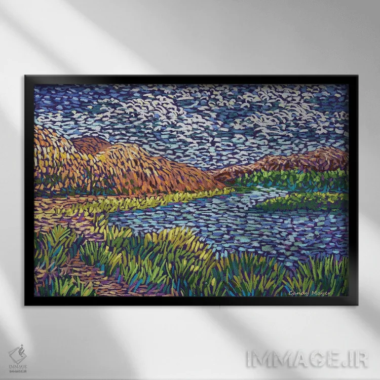 براساس پالت ترکیبی اثر، قاب تیک گرم (چوبی) پیشنهاد اول است و مشکی مات (فریم متوسط) مکمل. برای سفارشهای پروژهای با ابعاد و قابهای اختصاصی با ایماژ در تماس باشید.