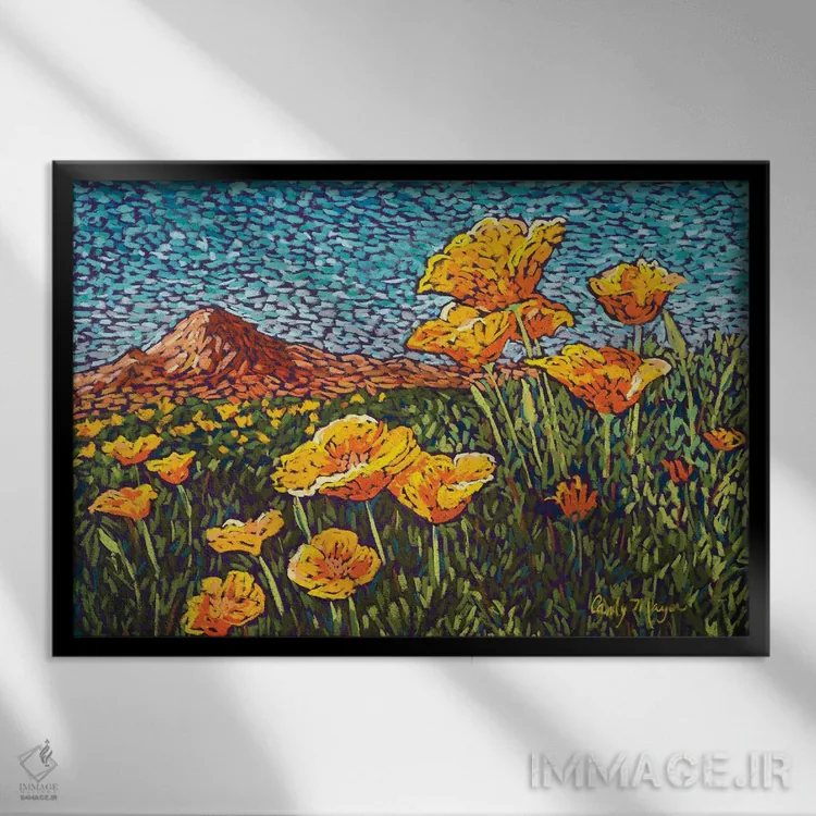 برای دیواری که میخواهید نرمتر دیده شود، «شقایقها» اثرِ «کندی مایر» فضا را نرمتر و مهماننوازتر میکند؛ برای فضای غذاخوری انتخابی خوشسلیقه است. حضورش آرام است، اما بیاثر نیست.