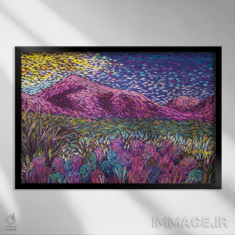 وقتی چیدمان را با دقت میچینید، «کوههای صورتی» اثرِ «کندی مایر» فضا را روشنتر و زندهتر نشان میدهد؛ برای دیوارهای گالریوار و ترکیب چند اثر پیشنهاد میشود. به فضا حس «گالری خانگی» میدهد، بدون اینکه اغراق کند.