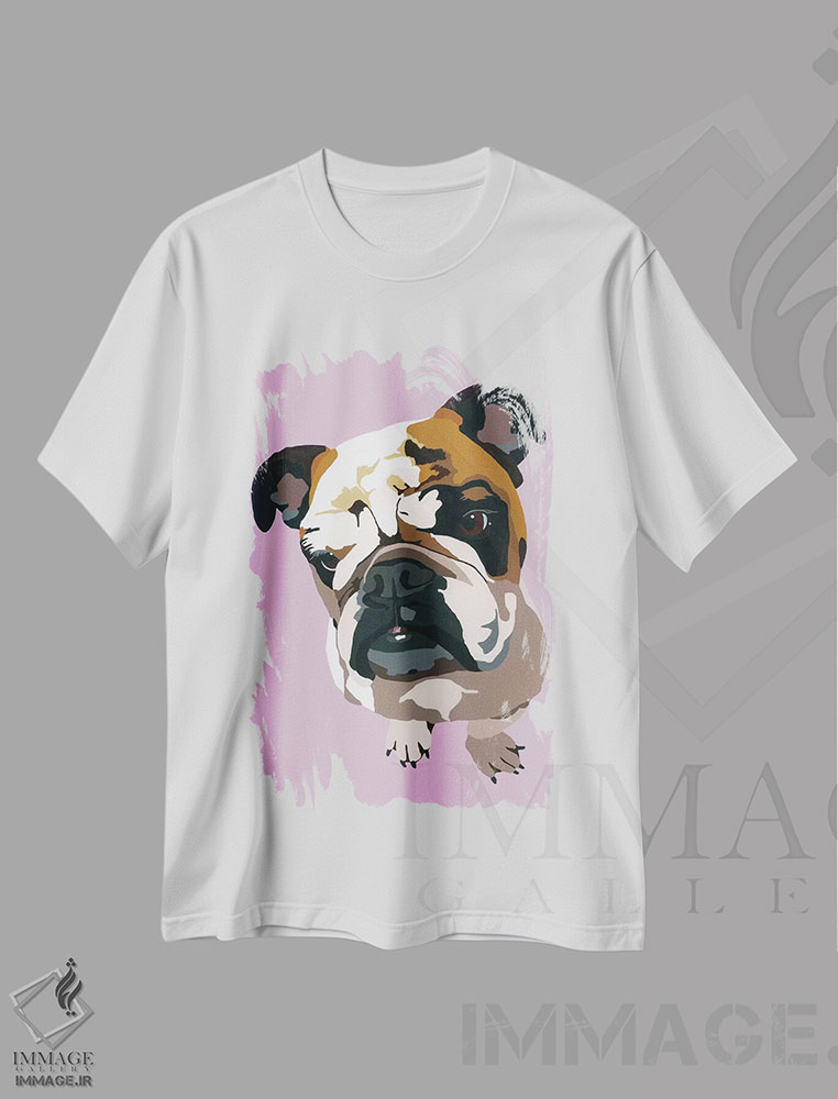تیشرت طرح دار بولداگ روی زمینه اسطوخودوس اثر جولی احمد