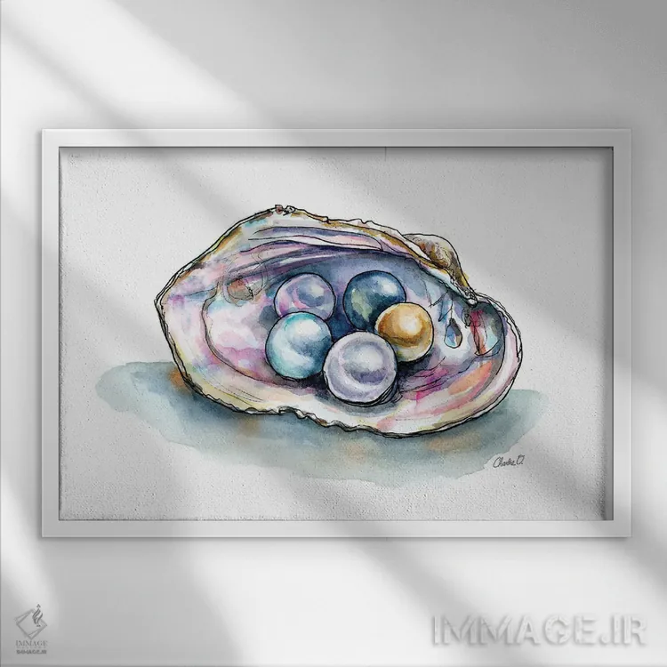 در «رنگ مرواریدها» اثرِ «چارلی اوشیلدز»، موضوعِ این اثر با رویکرد تزئینی اجرا شده؛ یعنی هم دوستداشتنی است و هم برای دکور، مرتب و خوشفرم.