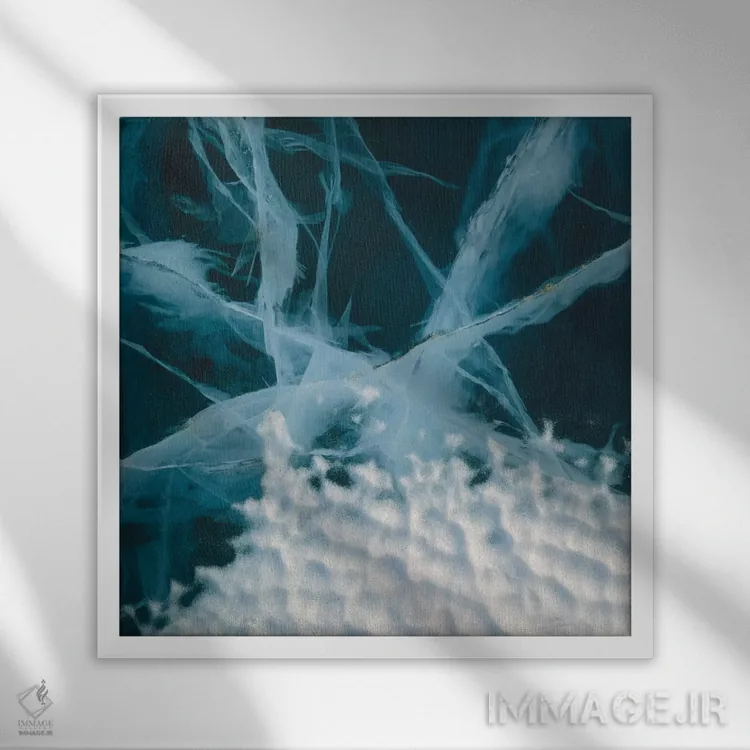 براساس پالت سرد اثر، قاب سفید مات (فریم باریک) پیشنهاد اول است و نقرهای برسخورده (متالیک) مکمل. برای سفارشهای پروژهای با ابعاد و قابهای اختصاصی با ایماژ در تماس باشید.