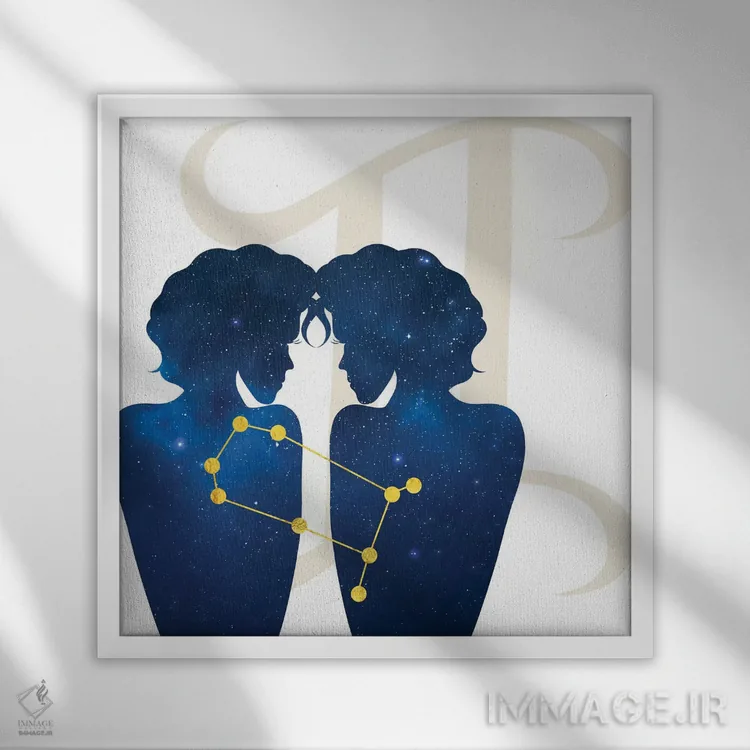 تابلو ستارگان برج جوزا (دوپیکر) اثر فایو بای فایو کالکتیو - نمای قاب‌دار سفید