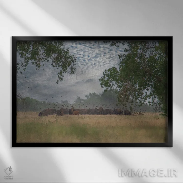 براساس پالت ترکیبی اثر، قاب تیک گرم (چوبی) پیشنهاد اول است و مشکی مات (فریم متوسط) مکمل. برای سفارشهای پروژهای با ابعاد و قابهای اختصاصی با ایماژ در تماس باشید.