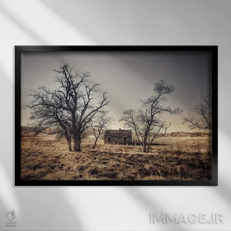 تابلو خانه کم‌رنگ کنار تپه‌ها اثر کریستوفر توماس - نمای قاب‌دار مشکی