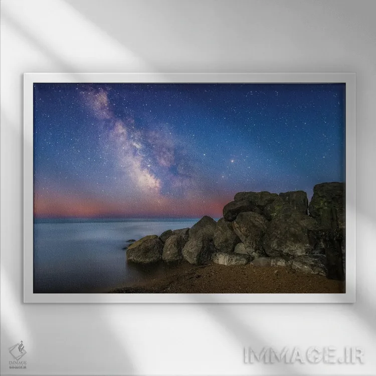 براساس پالت ترکیبی اثر، قاب بلوط روشن (چوبی) پیشنهاد اول است و استخوانی ملایم مکمل. برای سفارشهای پروژهای با ابعاد و قابهای اختصاصی با ایماژ در تماس باشید.