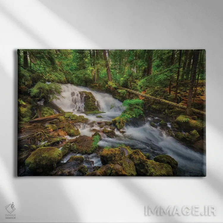 تابلو آمریکا، اورگن، پراسپکت. آبشار پیرسونی نزدیک چشم‌انداز ایالتی پراسپکت. اثر کریستوفر رید - نمای روبه‌رو روی دیوار