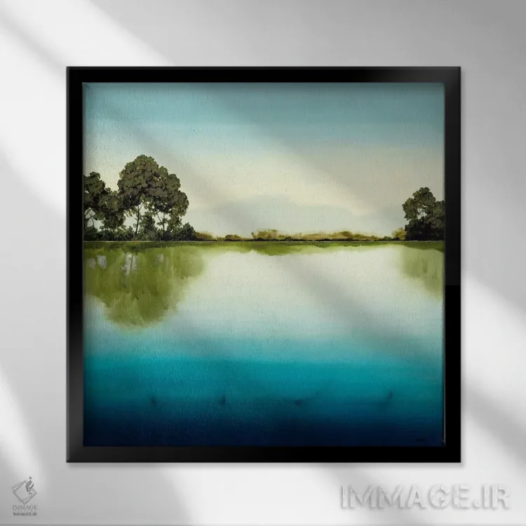 تابلو "دریاچهٔ لاجوردی" اثر رابرت شارون - نمای قاب‌دار مشکی