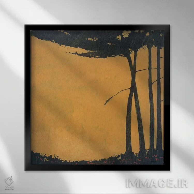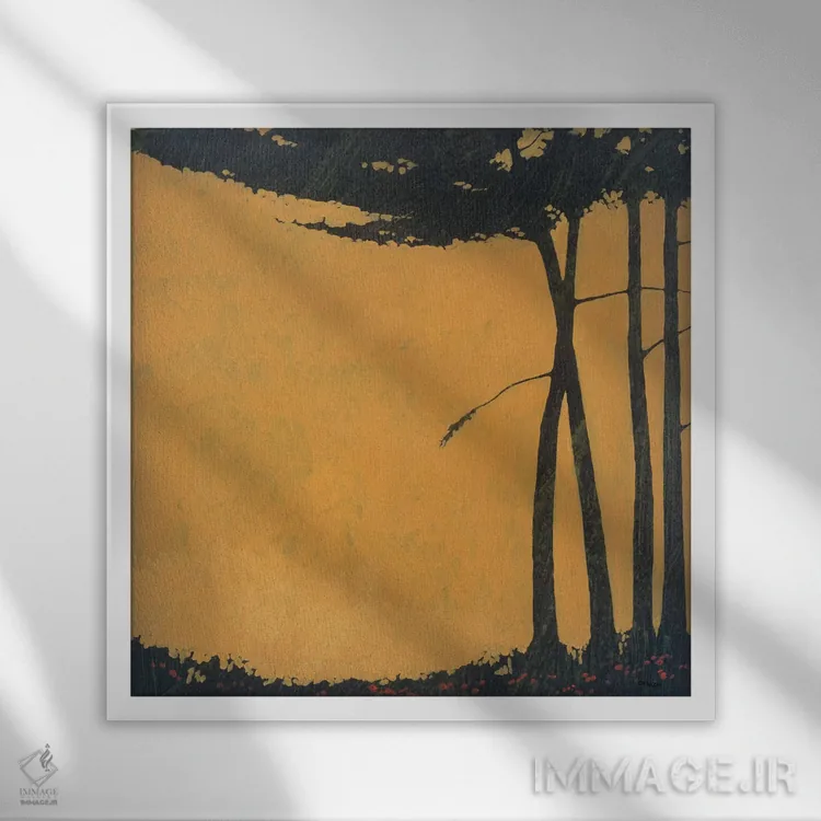 براساس پالت گرم اثر، قاب بلوط روشن (چوبی) پیشنهاد اول است و استخوانی ملایم مکمل. برای سفارشهای پروژهای با ابعاد و قابهای اختصاصی با ایماژ در تماس باشید.
