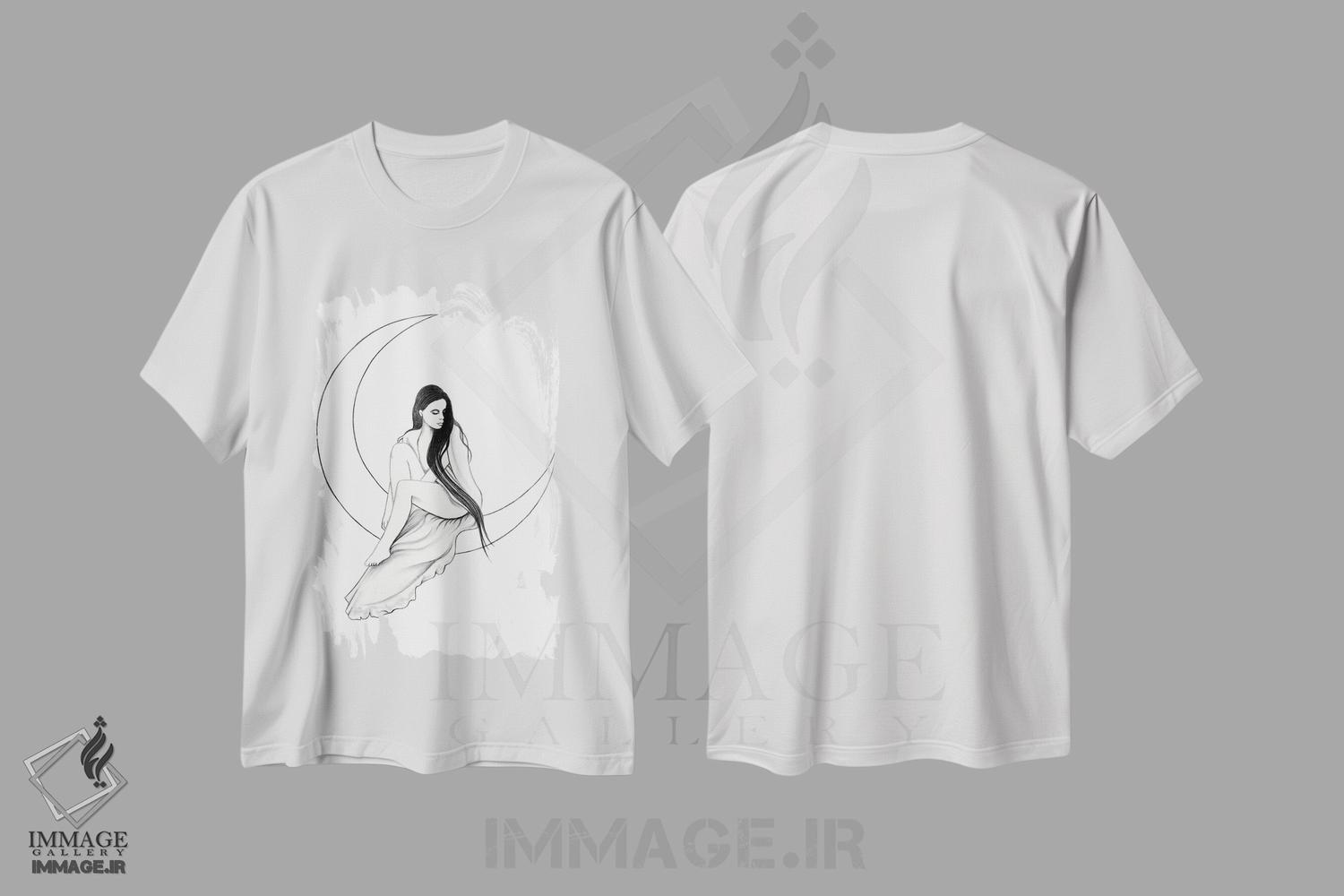 تیشرت طرح دار ماه، نقاشی و تصویرگری سیاه و سفید اثر آندریا هرنیاک | فروشگاه ایماژ