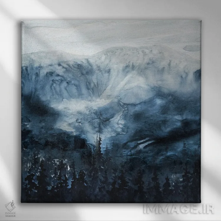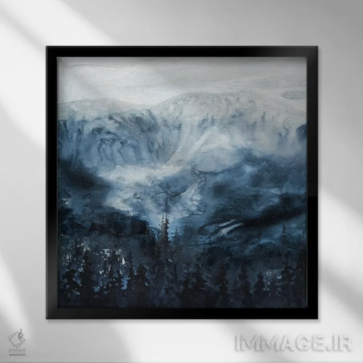براساس پالت سرد اثر، قاب سفید مات (فریم باریک) پیشنهاد اول است و نقرهای برسخورده (متالیک) مکمل. برای سفارشهای پروژهای با ابعاد و قابهای اختصاصی با ایماژ در تماس باشید.