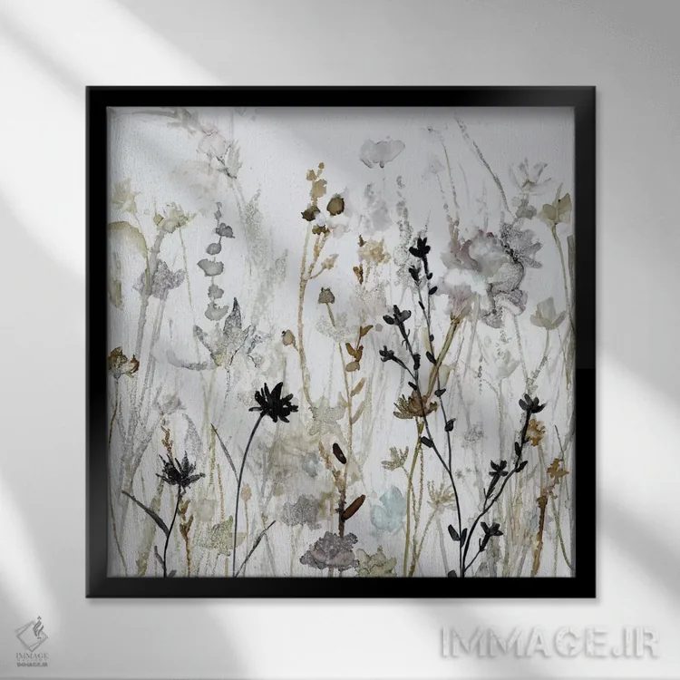 براساس پالت گرم اثر، قاب بلوط روشن (چوبی) پیشنهاد اول است و استخوانی ملایم مکمل. برای سفارشهای پروژهای با ابعاد و قابهای اختصاصی با ایماژ در تماس باشید.