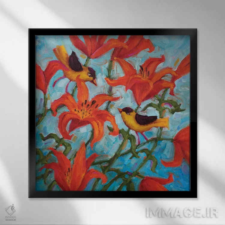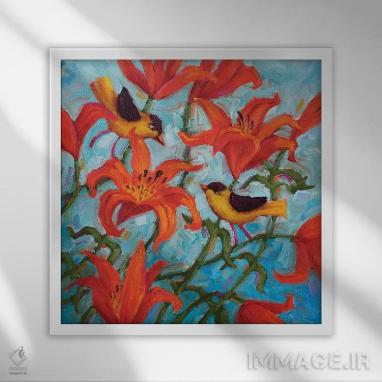 اگر به آثار حیوانات علاقه دارید، «ملودیهای سوسن غربی» اثرِ «سیندی روِل» در کنار رنگهای خنثی، تضاد دلچسبی میسازد، برای خانههایی با چوب و پارچههای گرم گزینهٔ مناسبیست. حسش صمیمی است، اما کیفیتش جدی و خوشپرداخت.