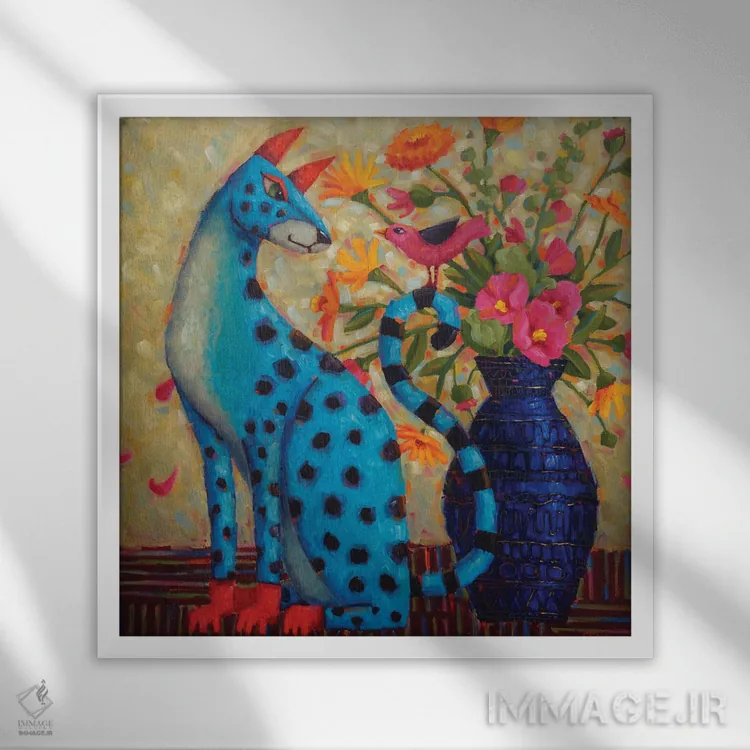 براساس پالت ترکیبی اثر، قاب تیک گرم (چوبی) پیشنهاد اول است و مشکی مات (فریم متوسط) مکمل. برای سفارشهای پروژهای با ابعاد و قابهای اختصاصی با ایماژ در تماس باشید.