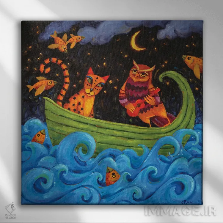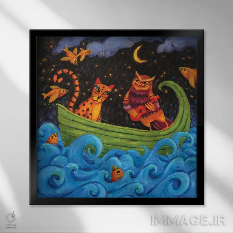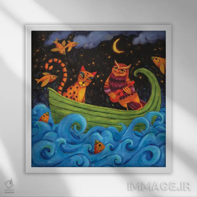 در «قایق عشق» اثرِ «سیندی روِل»، حضور حیوانات به فضا، گرمیِ ملایم اضافه میکند؛ برای دیوار کنار میز کار انتخابی خوشسلیقه است. برای دیوار گالریوار هم گزینهٔ خوبیست.