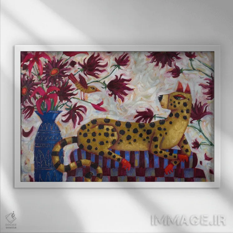 براساس پالت ترکیبی اثر، قاب تیک گرم (چوبی) پیشنهاد اول است و مشکی مات (فریم متوسط) مکمل. برای سفارشهای پروژهای با ابعاد و قابهای اختصاصی با ایماژ در تماس باشید.