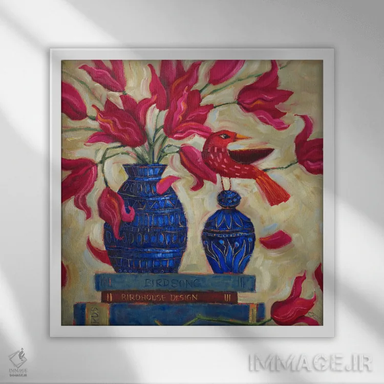 براساس پالت ترکیبی اثر، قاب تیک گرم (چوبی) پیشنهاد اول است و مشکی مات (فریم متوسط) مکمل. برای سفارشهای پروژهای با ابعاد و قابهای اختصاصی با ایماژ در تماس باشید.