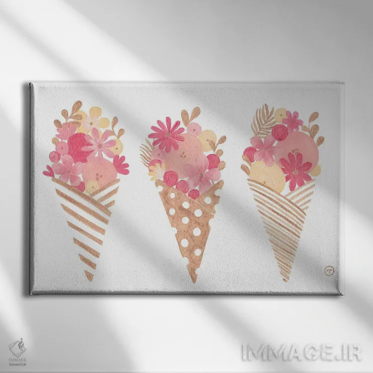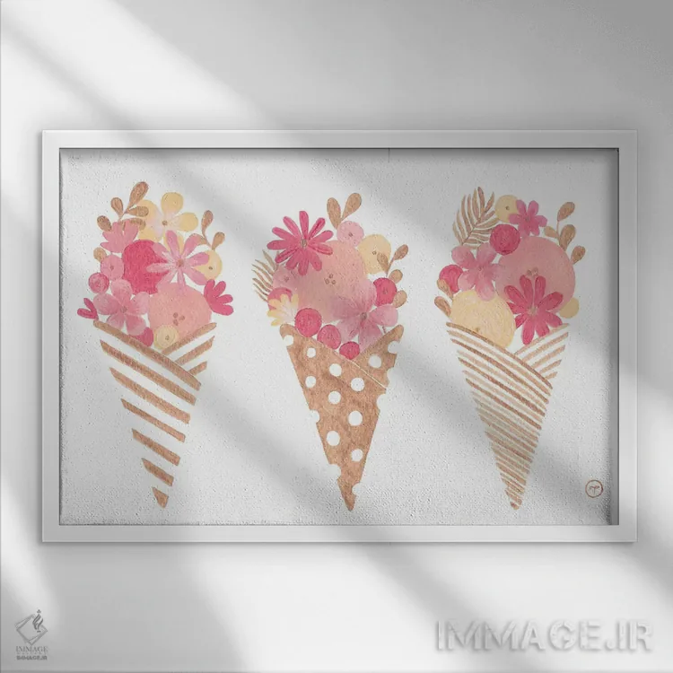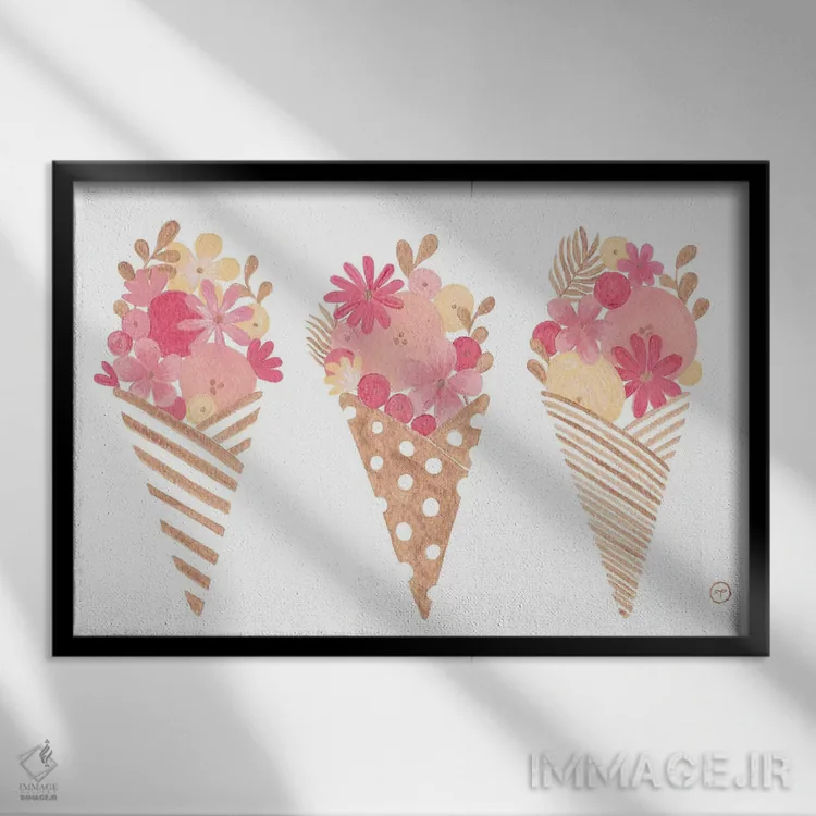 این تابلو با عنوان «قیف بستنی روی کاغذ طلایی» اثرِ «کریتینگ تارین»، حسِ گرم و صمیمی به فضا میدهد.