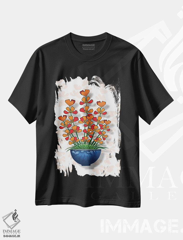 طرح «نارنجی شادی آور در گلدان آبی» روی تیشرت؛ معرفی جزئیات و ست های پیشنهادی