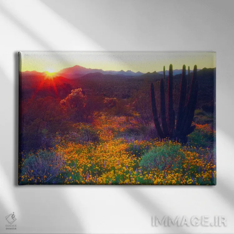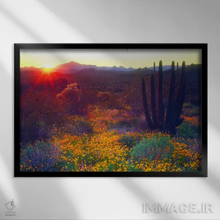 اگر میخواهید دیوار از «پسزمینه» بیرون بیاید، «غروب خورشید بر فراز مناظر جنوب غربی آمریکا، یادبود ملی ارگان پایپ، شهرستان پیما، آریزونا، آمریکا» اثرِ «کریستوفر تالبوت فرانک» تضادهای رنگی را خوشقوارهتر میکند؛ برای فضاهایی که میخواهید مرکز توجه داشته باشند پیشنهاد میشود. اگر دنبال زیباییِ بیادعا هستید، این اثر درست مینشیند.