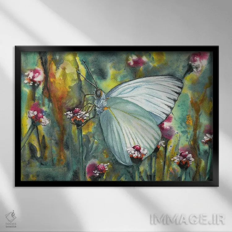 اگر دوست دارید دیوار روشنتر و آرامتر دیده شود، «ملکه» اثرِ «کریستین ریشو» حس فصل را آرام وارد فضا میکند، برای نشیمنهای روشن گزینهٔ مناسبیست. با قاب روشن یا چوبی، حس طبیعیتری پیدا میکند.