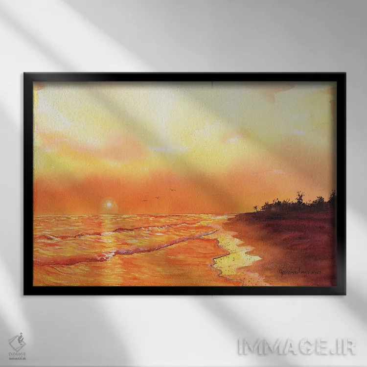 براساس پالت گرم اثر، قاب تیک گرم (چوبی) پیشنهاد اول است و مشکی مات (فریم متوسط) مکمل. برای سفارشهای پروژهای با ابعاد و قابهای اختصاصی با ایماژ در تماس باشید.