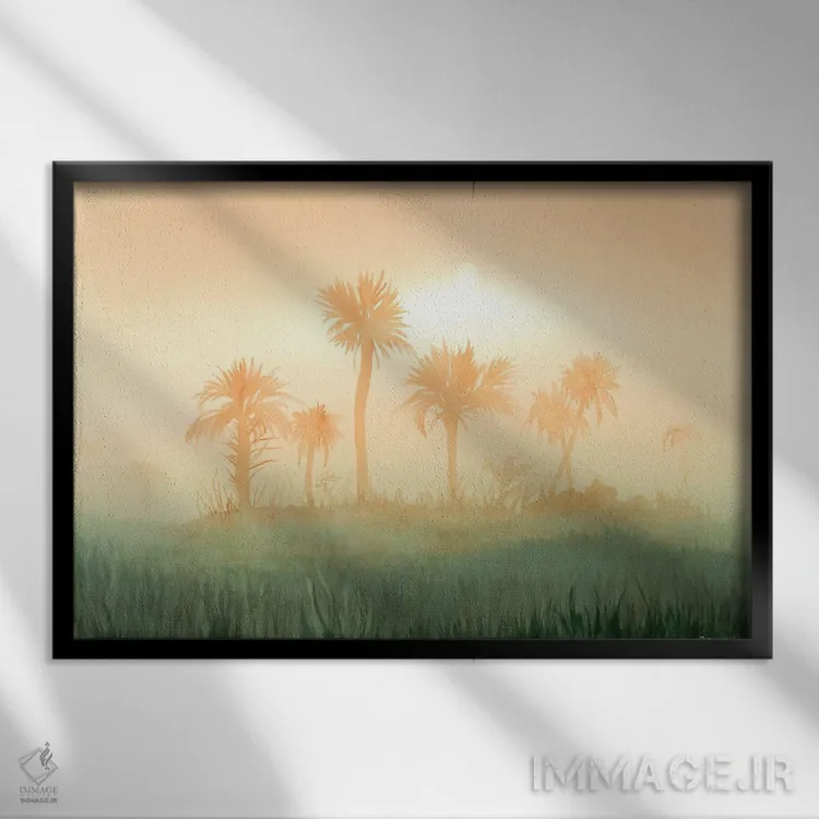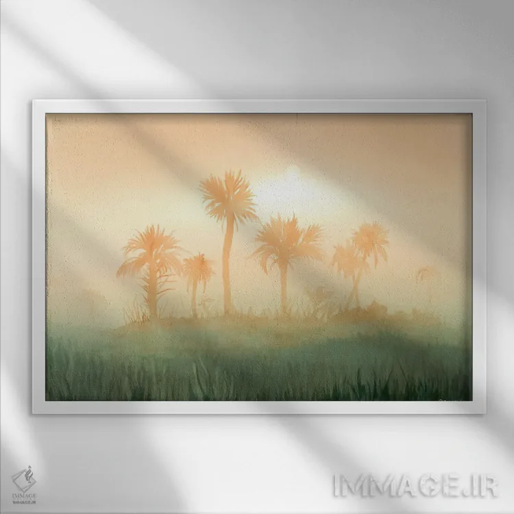 براساس پالت ترکیبی اثر، قاب بلوط روشن (چوبی) پیشنهاد اول است و استخوانی ملایم مکمل. برای سفارشهای پروژهای با ابعاد و قابهای اختصاصی با ایماژ در تماس باشید.