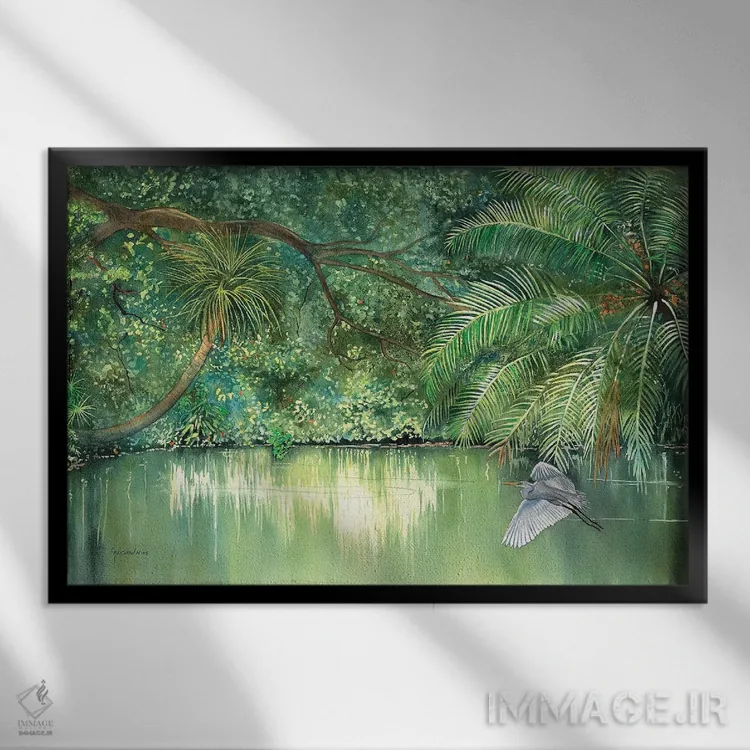 برای اتاقی که به یک عنصر دوستداشتنی نیاز دارد، «ساکن رودخانه» اثرِ «کریستین ریشو» فضا را صمیمیتر و دعوتکنندهتر نشان میدهد؛ برای فضاهای روستیک یا بوهو انتخابی خوشسلیقه است. به دیوار، قصه میدهد—اما قصهای آرام و شیک.