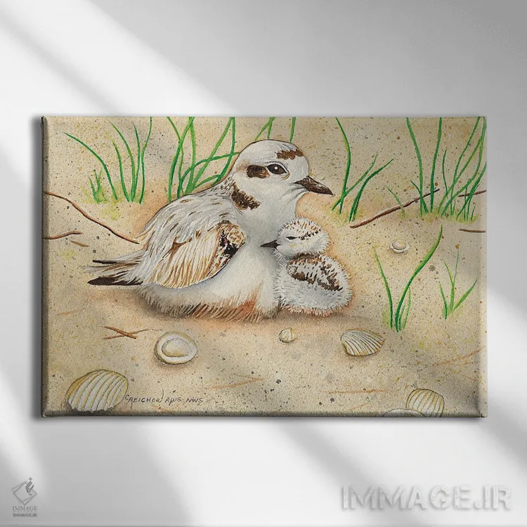 تابلو مادر و جوجهٔ زاغ گلوچر سفید اثر کریستین ریشو
