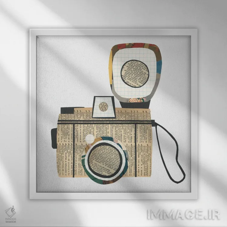 «دوربین عکاسی» اثرِ «پیپر کاتز (استودیو طراحی کاغذی)» یک قاب دکوراتیوِ گرم و دلنشین است؛ این اثر در اجرای پرداختِ هنری، فضا را نرمتر و صمیمیتر نشان میدهد.