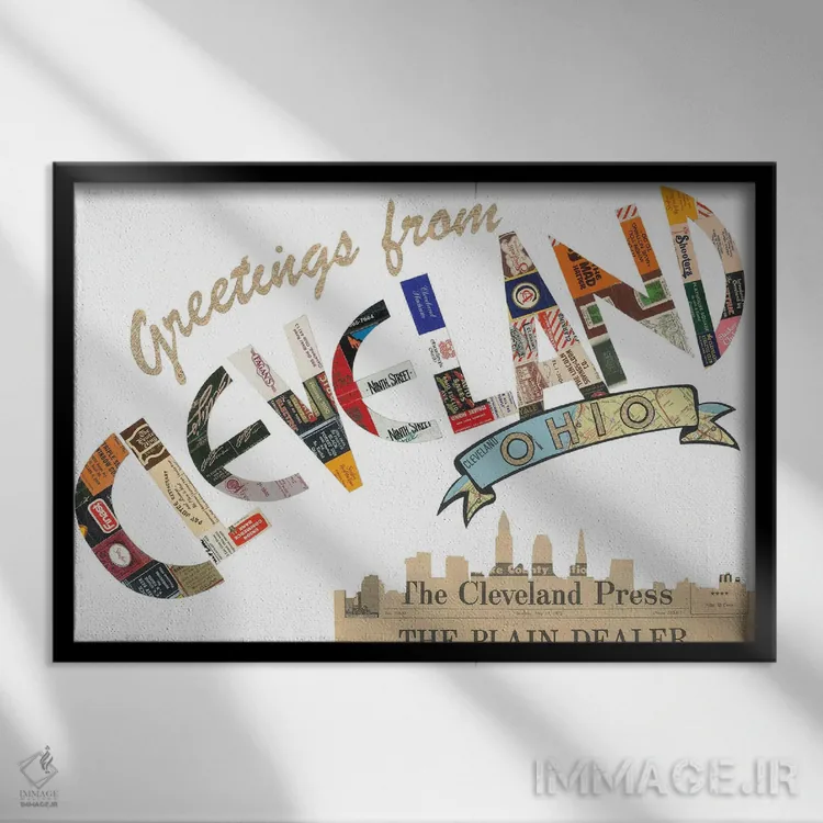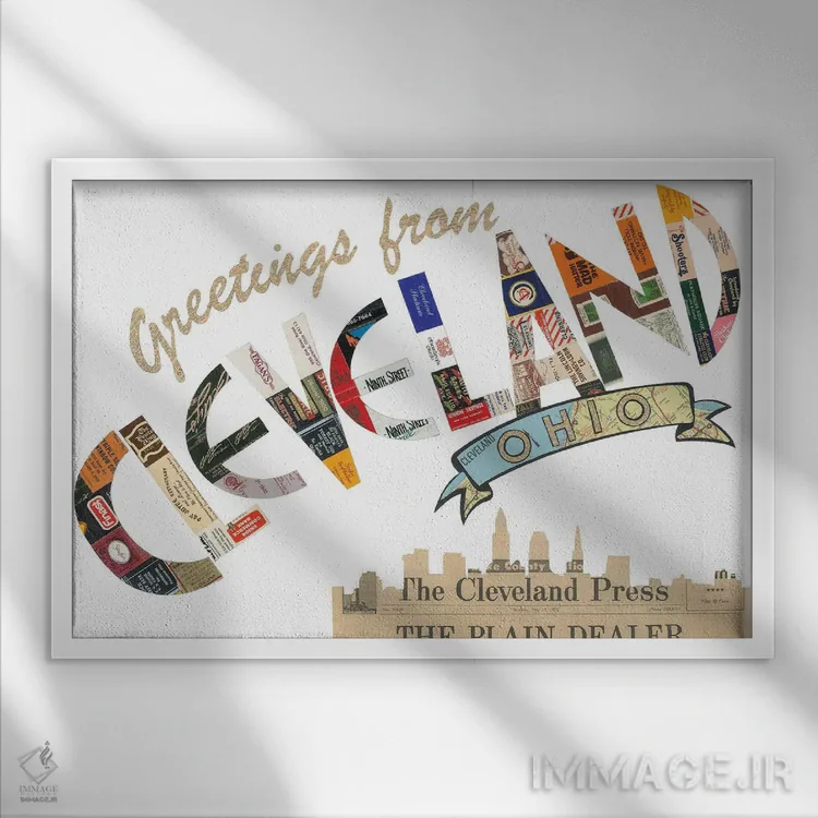 تابلو درود از کلیولند اثر پیپر کاتز (استودیو طراحی کاغذی) - نمای قاب‌دار سفید