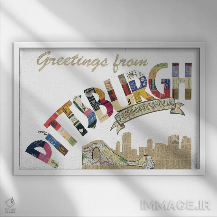 تابلو درود از پیتسبورگ اثر پیپر کاتز (استودیو طراحی کاغذی) - نمای قاب‌دار سفید