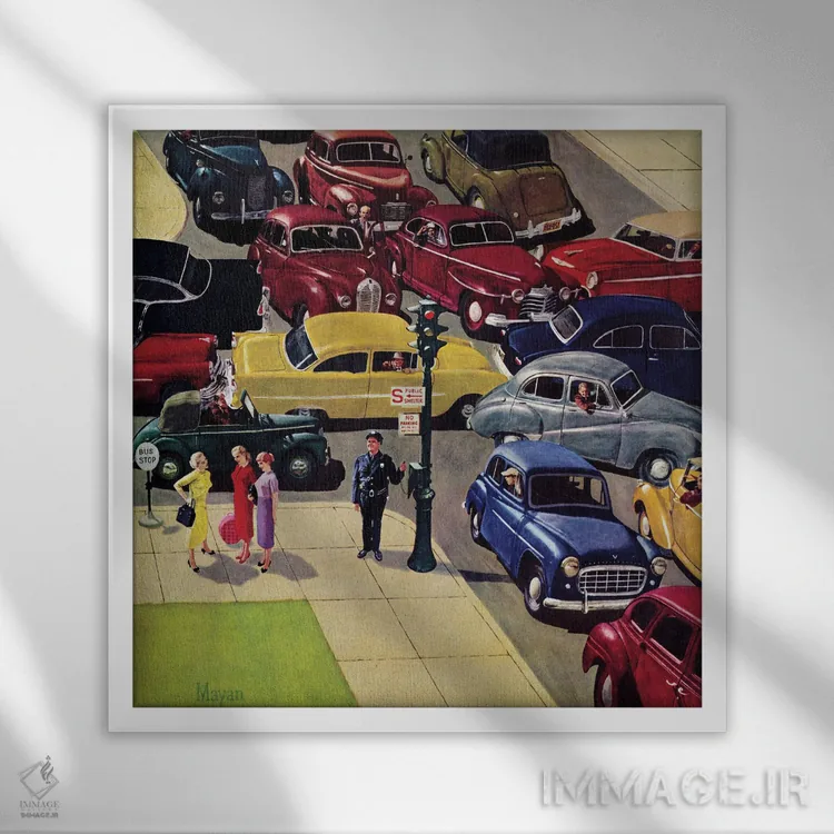 براساس پالت ترکیبی اثر، قاب تیک گرم (چوبی) پیشنهاد اول است و مشکی مات (فریم متوسط) مکمل. برای سفارشهای پروژهای با ابعاد و قابهای اختصاصی با ایماژ در تماس باشید.