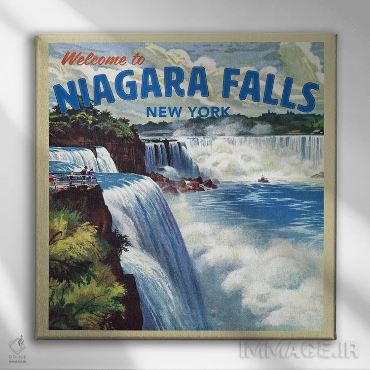 تابلو به آبشار نیاگارا خوش آمدید اثر سَتردی ایونینگ پُست (مجله و برند هنری آمریکایی) - نمای نزدیک بافت بوم