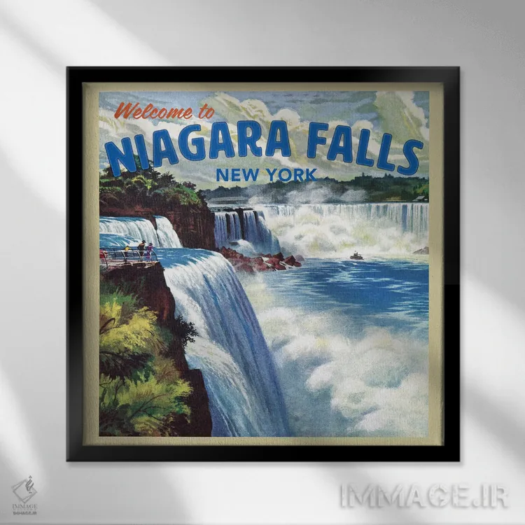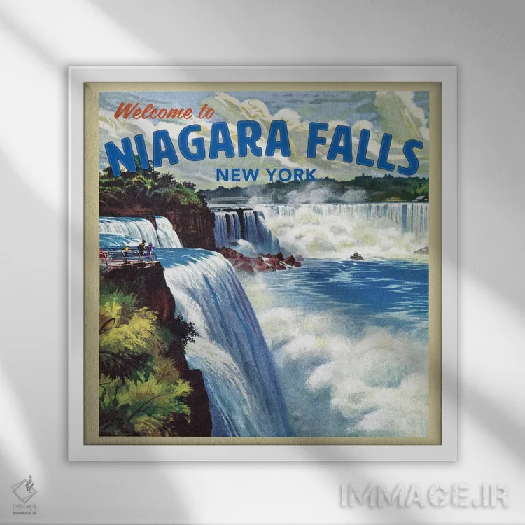 تابلو به آبشار نیاگارا خوش آمدید اثر سَتردی ایونینگ پُست (مجله و برند هنری آمریکایی) - نمای قاب‌دار سفید