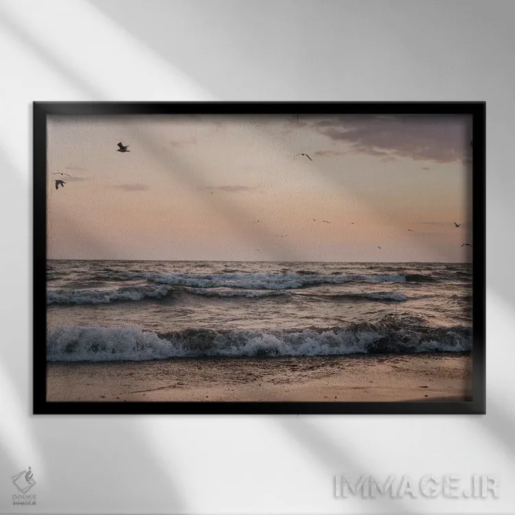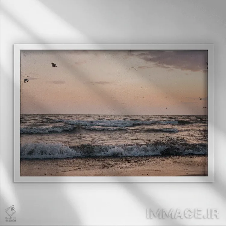 براساس پالت گرم اثر، قاب بلوط روشن (چوبی) پیشنهاد اول است و استخوانی ملایم مکمل. برای سفارشهای پروژهای با ابعاد و قابهای اختصاصی با ایماژ در تماس باشید.