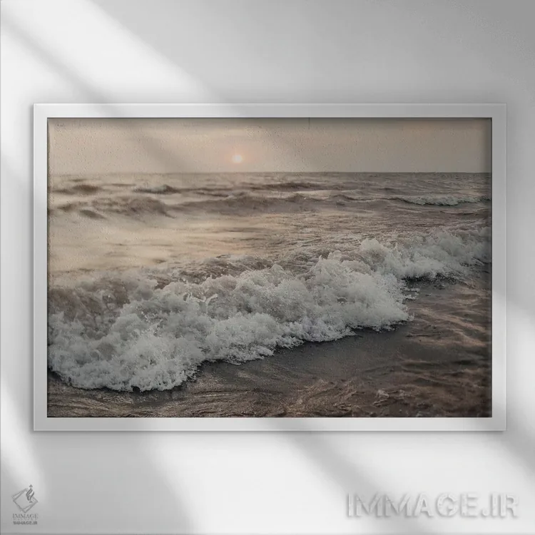 براساس پالت گرم اثر، قاب بلوط روشن (چوبی) پیشنهاد اول است و استخوانی ملایم مکمل. برای سفارشهای پروژهای با ابعاد و قابهای اختصاصی با ایماژ در تماس باشید.