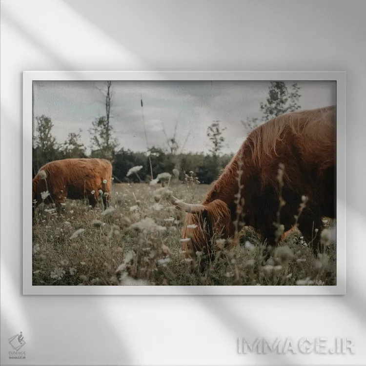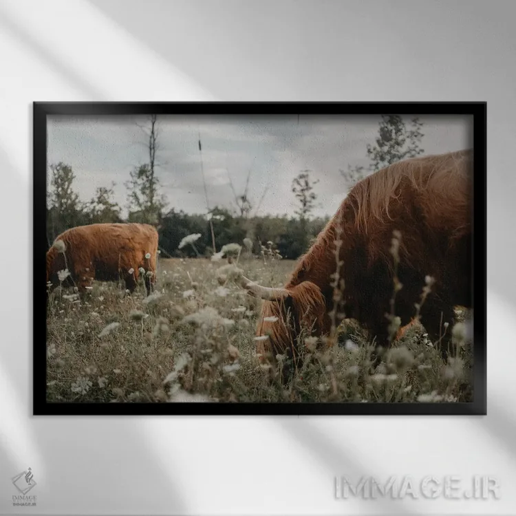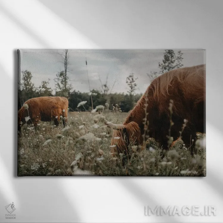 اگر به آثار حیوانات علاقه دارید، «گاوهای هایلند در چمنزار» اثرِ «چلسیا ویکتوریا» در کنار رنگهای خنثی، تضاد دلچسبی میسازد، برای هدیهدادن به دوستداران حیوانات گزینهٔ مناسبیست. برای دیوار گالریوار هم گزینهٔ خوبیست.